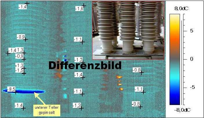 FLIR SoftwareBei den folgenden Bildern handelt es sich um Isolatoren für Hochspannung. Bitte zum Vergrößern auf die Abbildungen klicken! |
